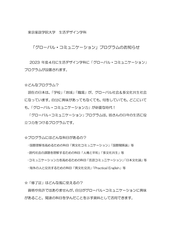 - 家庭から社会へ発信力のある家庭科教員