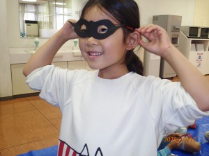 焼き芋ができる間に仮面舞踏会で使う予定のお面のめがね作りです。今日は10名の参加でした。