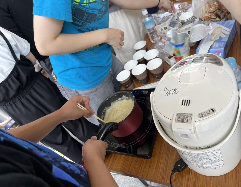 包丁やまな板を使用せずに作れるレシピで、法政大学で防災キャンプを体験した学生さんには好評でした。