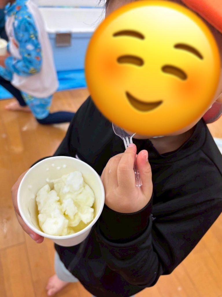 アイスクリーム作りでは、アイスクリームメーカー、、、、ではなく、牛乳、砂糖、バニラエッセンスを混ぜ、氷と一緒に振り回す作り方で作りました。