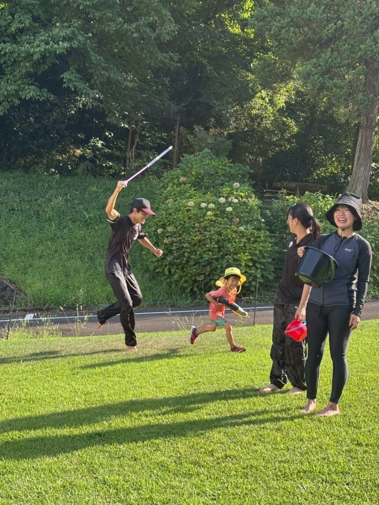 今回の森のようちえんでは、暑さを吹き飛ばすために、アイスクリーム作りと、水遊びを行いました。