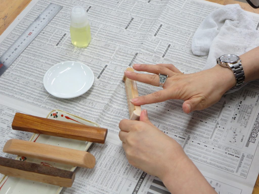 講座は、カトラリーレストの説明、木材の種類、使用する道具の説明、参加者の自己紹介などを行い、制作に取り掛かりました。