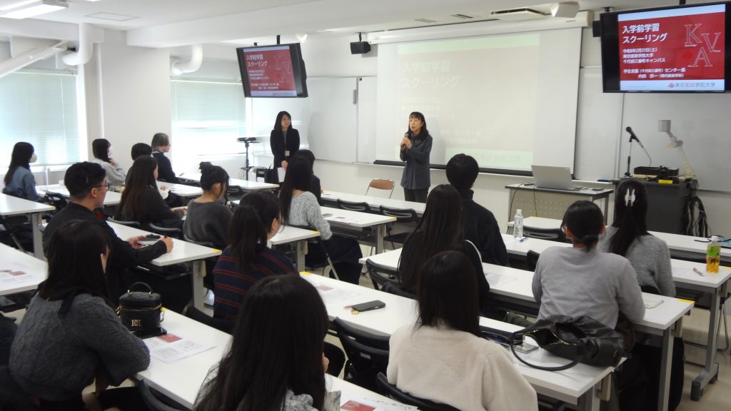 令和8年度入学予定者を対象とした入学前学習スクーリングを、町田キャンパスでは令和8年2月14日(土)に、千代田三番町キャンパスでは令和8年2月21日(土)に、それぞれ実施しました。このスクーリングは、入学予定者が教職員・在学生との交流を通じて大学の学びについて理解を深めるとともに、大学の学びによってどのように成長していきたいかという自身の将来像を考え、大学生活の目的をより明確にすることをめざしています。