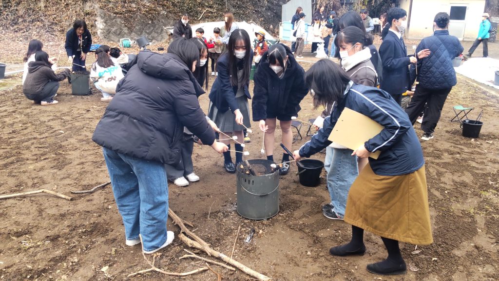 町田キャンパスでは、生活共創学科・こども教育学科の年内入試の入学予定者を対象として実施しました。前半の全体会では、スクーリングの目的や本学の学生支援体制、大学での学びの特色などについての説明を行いました。後半の学科・コース別分科会では、学生スタッフの上級生による学生生活の紹介、参加者の自己紹介、質問コーナー、懇談などを行いました。また、こども教育学科では、当日学内で実施していた「森のようちえん」の見学も行いました。「森のようちえん」の活動で使っていたかまどで、焼きマシュマロを作りました。