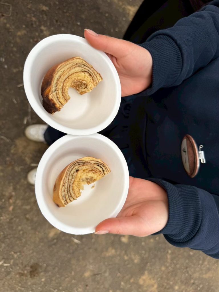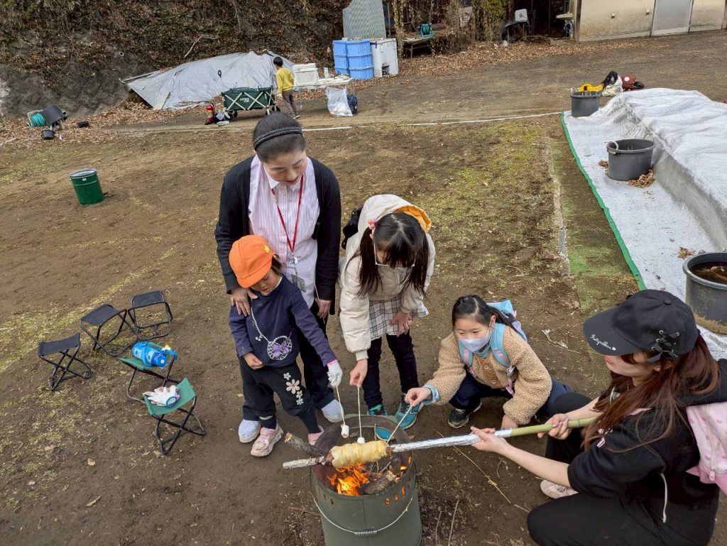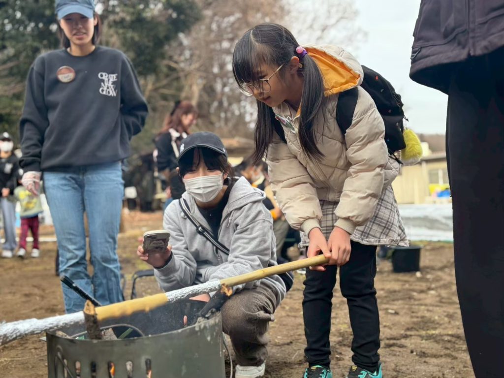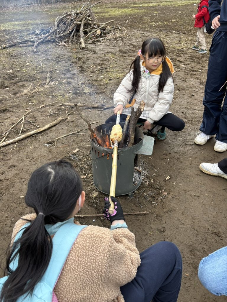 焚き火を囲みながら、友だちと協力して作ったバームクーヘンは特別なおいしさとなり、自然の中での貴重な体験となりました。✨(プログラムディレクター : 2年 ももち)
