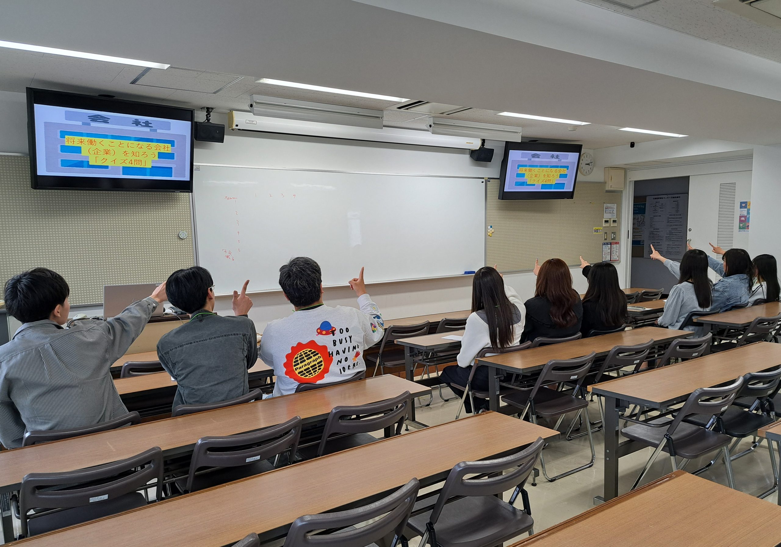 1501教室では、佐野先生と井上先生による「以心伝心ゲーム」が行われ、メンバーの結束が強まりました。