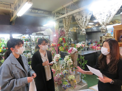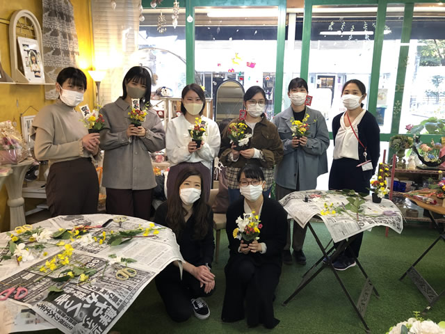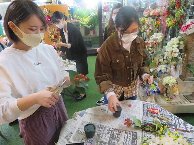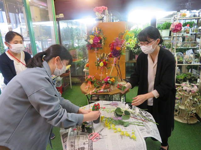 私たちがテーマを設定する中で生まれた疑問を、東京家政学院大学の近くにある花省さんにお尋ねし、食卓に彩りをプラスするフラワーアレンジメントを体験してきました。