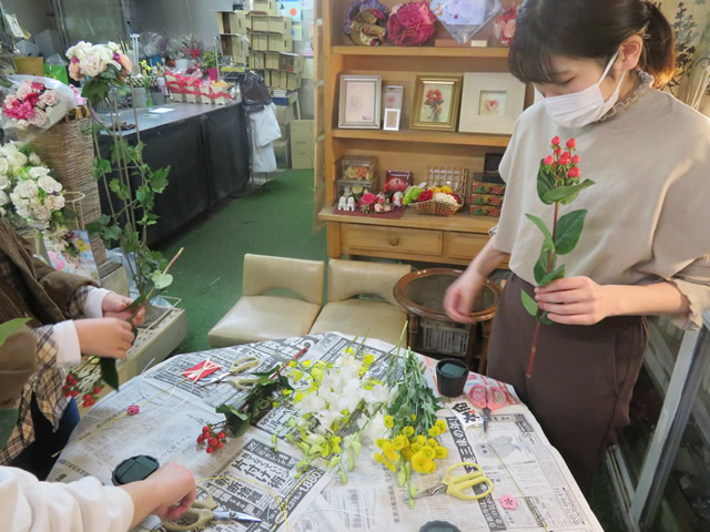 説明を受けた後アドバイスをいただきながら、アレンジメントをしました。