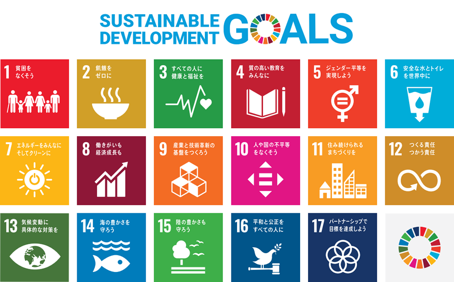 世界には貧困、戦争、気候変動、感染症など様々な課題があります。そこで、人類が安心して過ごせる持続可能でよりよい世界を目指し、2030年までに達成すべき国際目標が立てられました。それがSDGsです。17のゴール、169のターゲットで構成され、世界中の人々が協力しながら取り組んでいくことが求められています。
