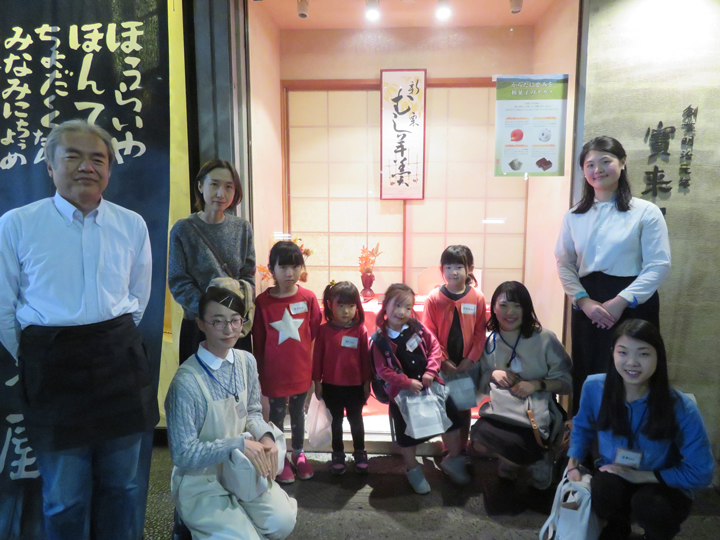 和菓子コースでは、靖国通りにある和菓子の宝来屋さんに、 和菓子について区内在住の親子さんと一緒に取材に行ってきました。