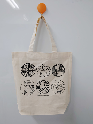 こちらの写真は完成品です。千代田区らしい花の絵と先輩方が開発した商品のイメージが合わさって、とてもかわいらしいバッグになりましたね!