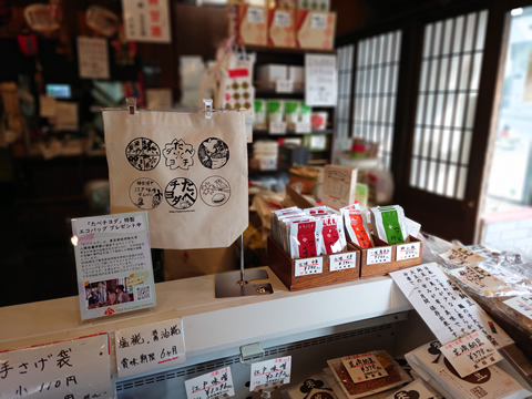 このエコバッグを2022年2月に天野屋さんをはじめ、今回の企画にご協力いただいた各店舗でお客様に無料配布しました。