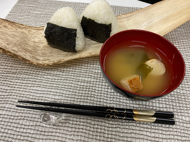 すべての取材が終わり、購入してきたお米と海苔でおいしいおにぎりを作り、 みんなで食べてみました!