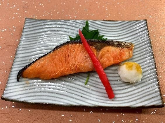 和紙の使い方は購入したお店側に任せていると伺ったので、私たちも食事と和紙を合わせてみました。今回は食事の種類ごとの比較するために、和食の代表である焼き鮭、肉じゃがと洋食代表のハンバーグ、和菓子の草餅を選択しました。食事に合わせて和紙を選び、合わせることで通常よりも食事が明るくなったと感じました。